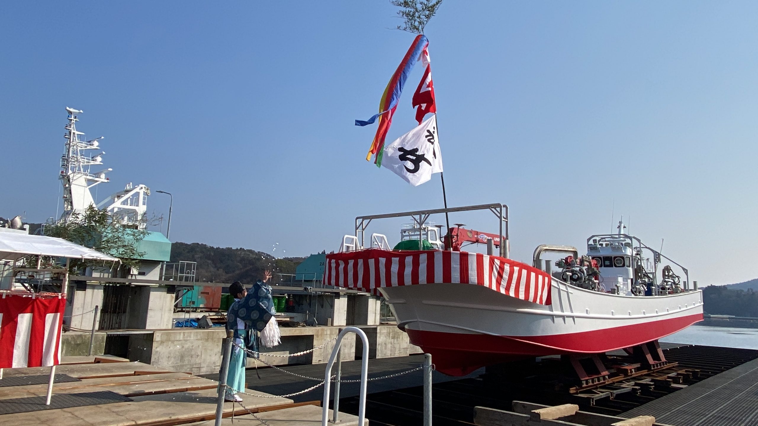 第七龍丸(定置網漁業,19㌧,株式会社山根漁業部 定置網大謀 石濱様)の進水式が執り行われました。